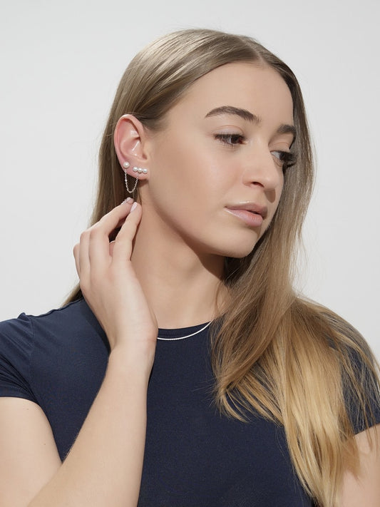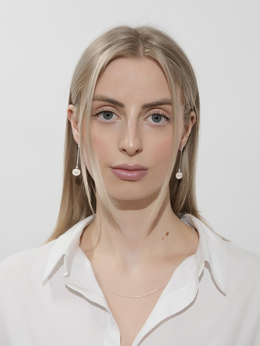 Perlové náušnice so striebornou retiazkou